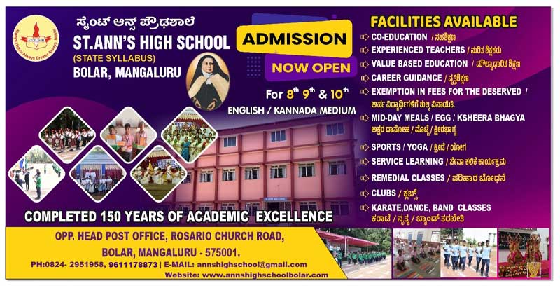 St.Ann’s High school started in this coastal district of Dakshina Kannada (South Canara) in 1870,